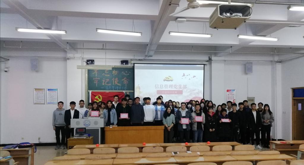 为在“不忘初心、牢记使命”主题教育中进一步做好“开门抓教育”,促进党团共建,西西一级AAA片婬片免费信息管理党支部于2019年11月14日在逸夫楼B303教室举办“不忘初心,牢记使命”主题教育知识竞赛总决赛。信息管理党支部成员及120余名同学观看本次比赛。