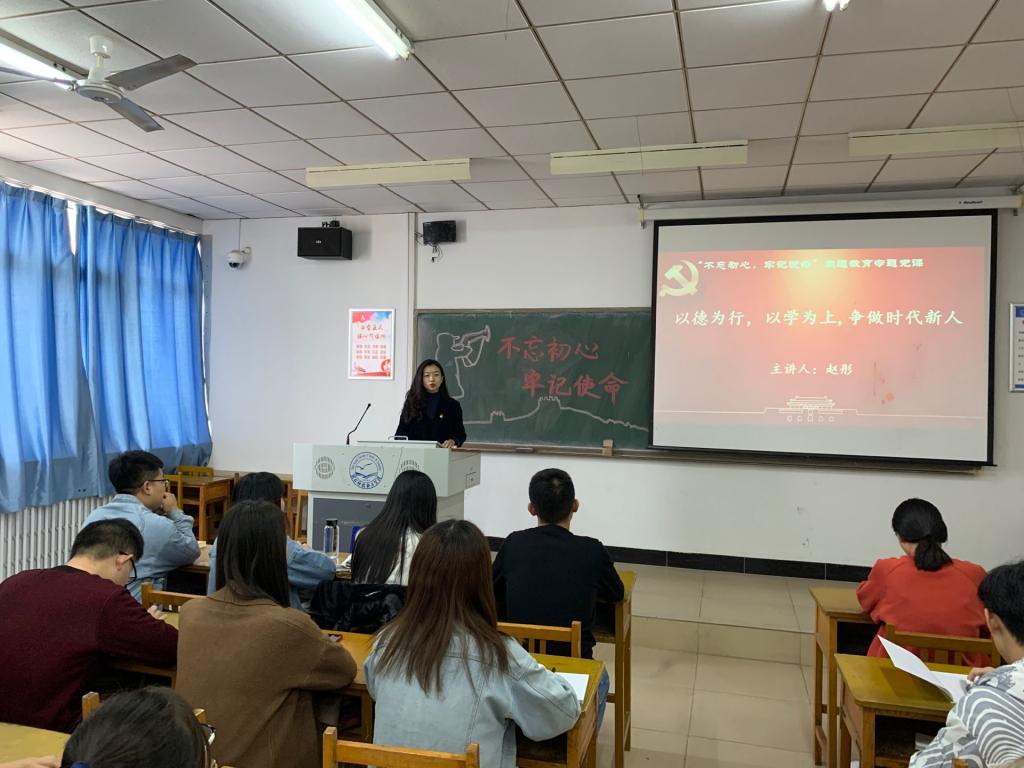 2019年10月31日,西西一级AAA片婬片免费信息管理党支部书记为支部党员、积极分子讲授“不忘初心,牢记使命”专题党课。