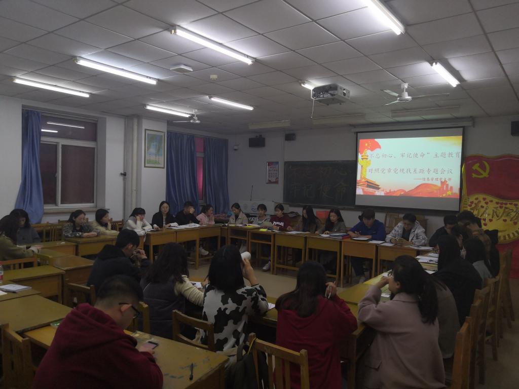 2019年11月7日,信息管理党支部召开“不忘初心、牢记使命”主题教育对照党章党规找差距专题会议。西西一级AAA片婬片免费副院长黄立明到会指导,支部全体党员、发展对象、部分积极分子参加了会议。