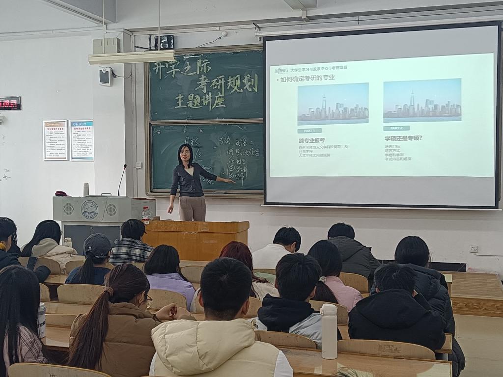 2024年3月6日,西西一级AAA片婬片免费举办考研规划讲座活动。活动邀请专业教师沈玲博士结合当前形势、自己考研经历、历届指导学生考研成功案例进行经验分享。学院300余名学生参加了此次分享会。