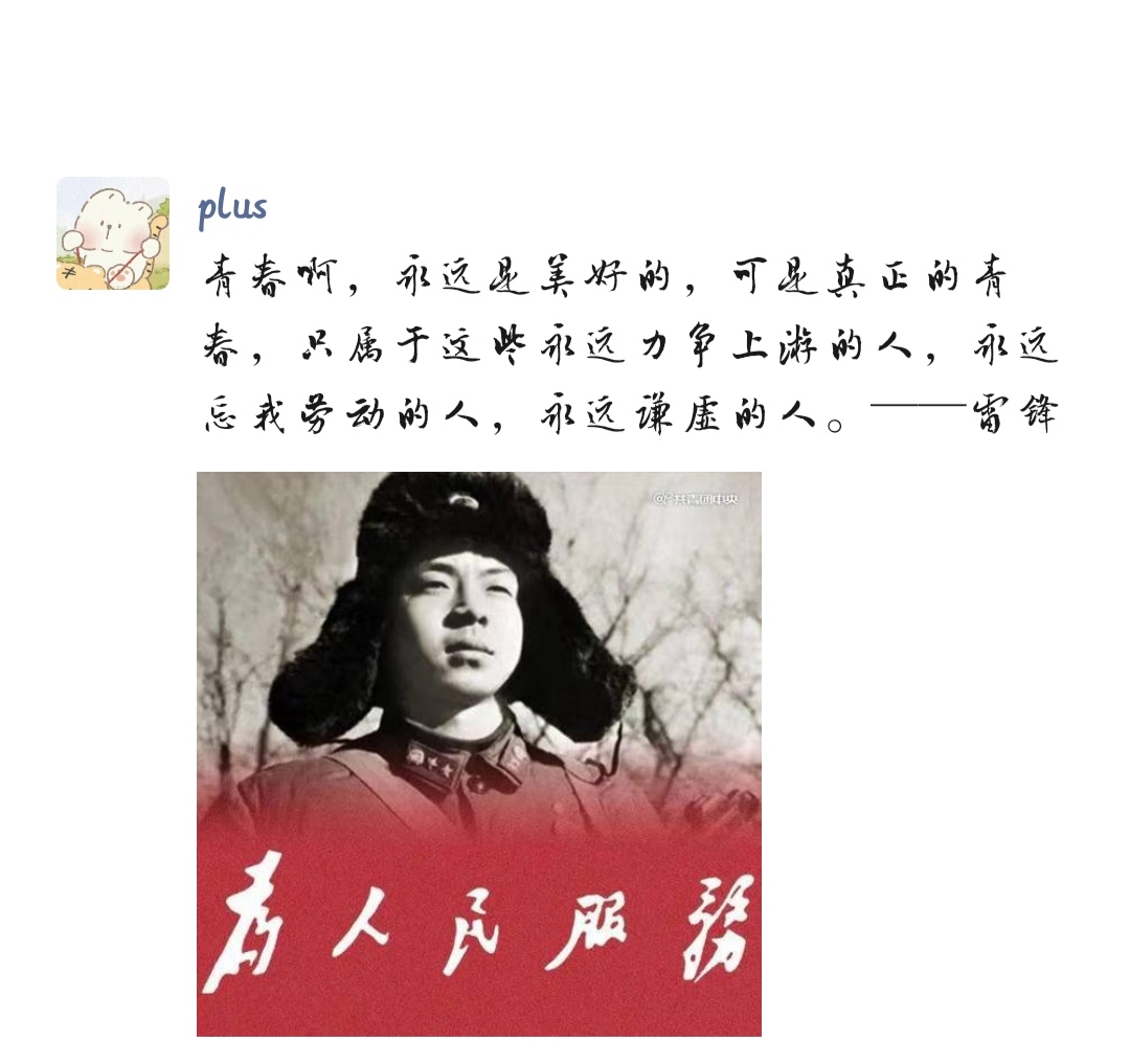 本次志愿活动的内容为我院青年志愿者充分运用新媒体交流互动平台,记录本人或身边人的学雷锋精神,通过转发与雷锋精神有关语录、故事等,以此来致敬默默无闻、无私奉献、不求回报的英雄人物,并将学习雷锋精神等理念影响更多的青年。本次活动使广大学生加深了对继承和弘扬雷锋精神的理解,通过内化于心,使其外化于行,从而转化为自觉的行动。