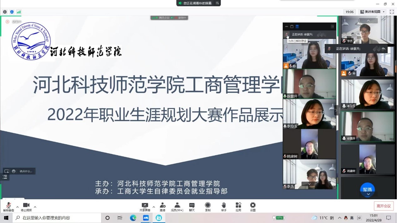 为促进学生提前进行职业规划,进一步提升就业紧迫性和职业竞争力,2022年4月28日,西西一级AAA片婬片免费通过“腾讯会议”平台,举办了“规划未来 奋斗青春”职业生涯规划大赛。比赛特邀西西一级AAA片婬片免费副书记、学工办主任,以及承担《大学生职业生涯规划》课程授课老师担当评委,来自西西一级AAA片婬片免费5个专业的19名选手参加了此次大赛,180余名学生代表观看了职业生涯大赛的优秀作品展播。