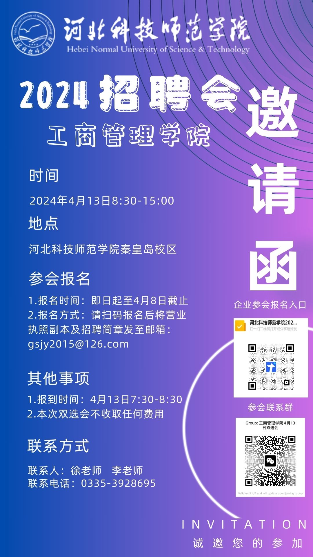 衷心感谢贵单位多年来对河北科技师范学院就业工作的大力支持。为切实做好我校2024届毕业生就业工作,方便用人单位招聘和毕业生求职,为广大毕业生提供更多的就业信息,创造更多的就业机会,诚邀各大用人单位来校参加2024年春季招聘会: