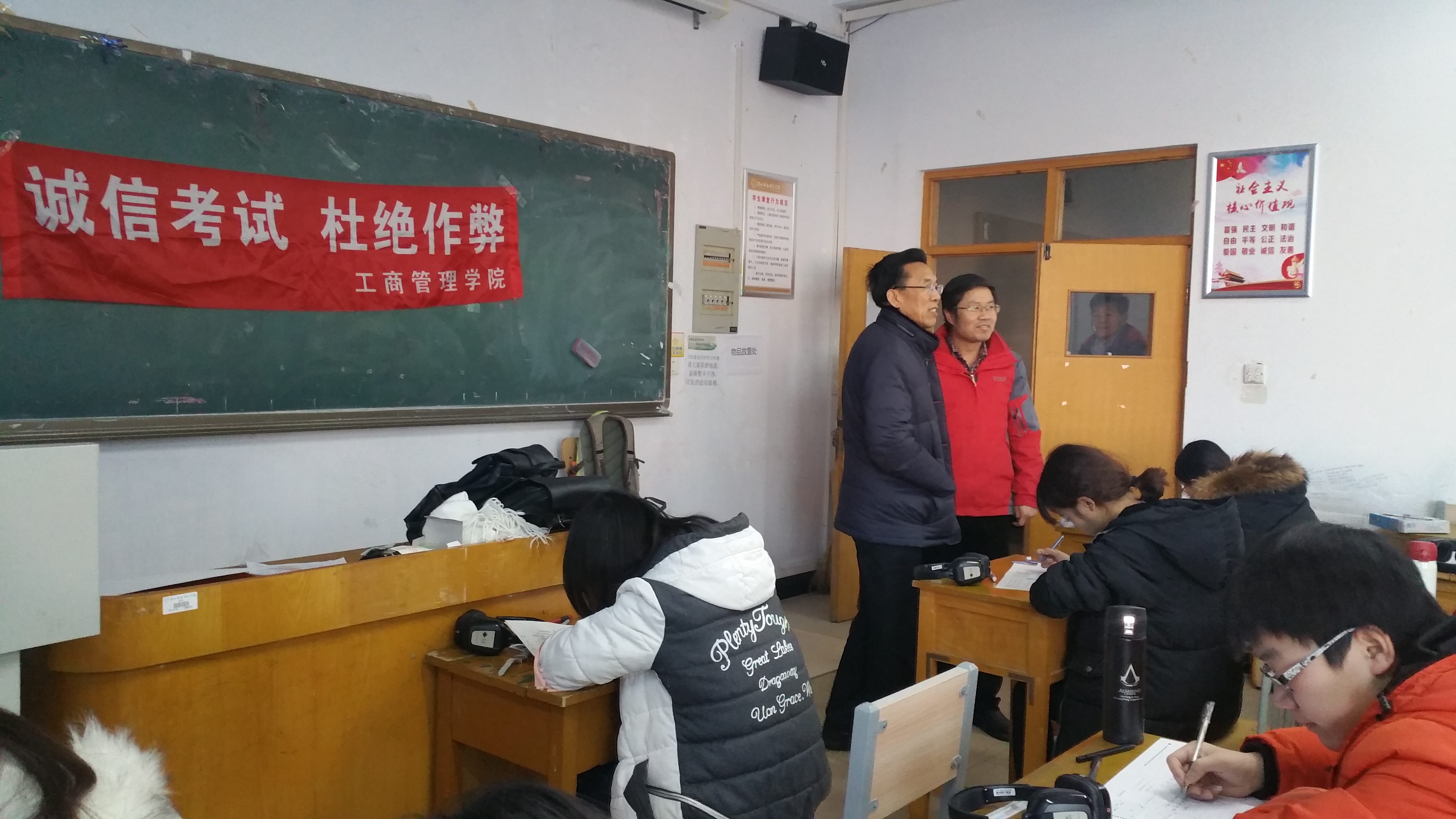 校党委书记、校长王同坤亲临考试现场,逐一巡视工商学院“无人监考”考场的考场秩序,并对学院的学生考试组织和管理工作提出具体要求。学院领导、全体学生工作人员、学院督导检查组积极做好考场巡视工作,保障考试顺利进行。