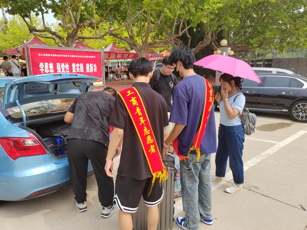 活动前,青年志愿者协会对志愿者进行专题培训,对校史知识进行宣讲,使志愿者充分了解我校办学历史,办学特点及学校文化,让志愿者能在贡献劳动的同时,也可以为新生讲解学校历史文化。秋风徐徐拂面至,意气风发少年来。随着一批批新生的到来,志愿者们开始了紧张而有序的迎新工作,校园各个路口都有志愿者们忙碌的身影。志愿者们身穿红马甲,手持迎新牌,提前到达指定路口等候新生的到来。面对前来咨询的新生,志愿者们友好问道并给新生指引方向、协助新生搬运行李、引领新生办理报到手续……志愿者们忙而不乱,为大一新生们提供了高质量的志愿服务。志愿者们用积极热情的服务,让异地求学的学子们感受到了家的温暖,他们用实际行动为新生暖心护航,成为了校园里一道靓丽的风景线。