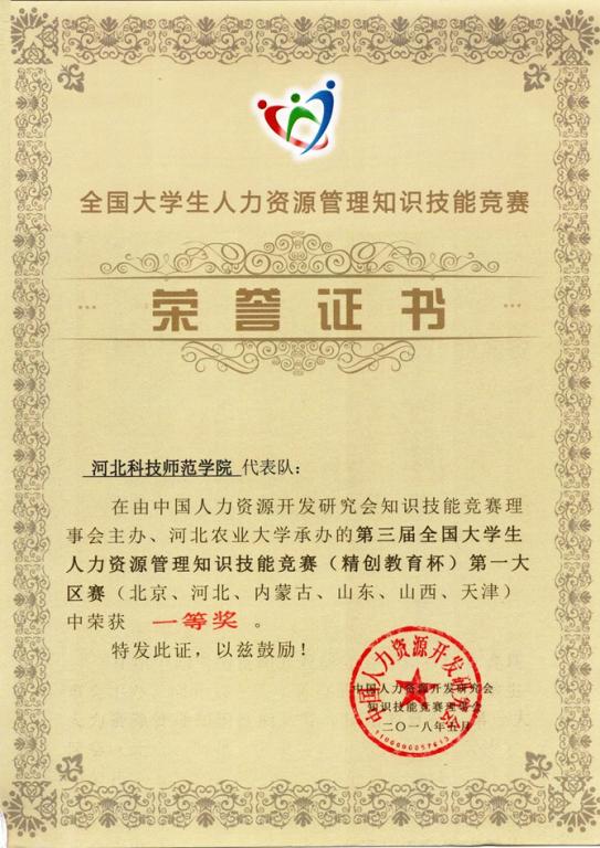此次比赛在河北农业大学举办,来自6个省市自治区的43所高校派出的44支参赛队伍参加了此次区域选拔赛,在众多高校中我校获得第一大区一等奖,这是人力资源管理专业带队老师和参赛学生历时三个月的艰苦练习的成果。无论是在备赛阶段还是比赛阶段,参赛队员展示出了良好的专业素养和团队合作精神。