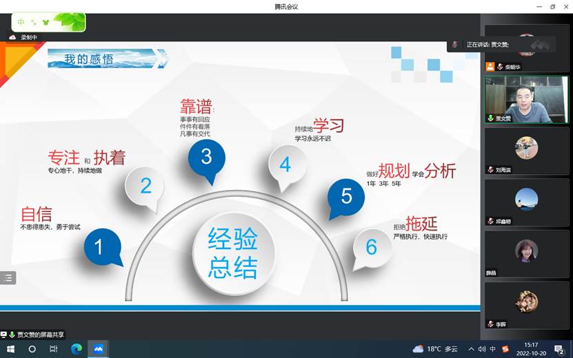 优秀校友兰建龙,结合自身的学习经历和工作行业背景,探讨了当前社会经济变革现状,点出了当前信息行业发展的新契机,并给学弟学妹的职业规划和个人素质培养提出了热忱、中肯的建议。优秀校友孙立强,从学生时代开始讲述自己的学习、奋进到最后成功的经历,深入浅出的讲述了从一个职场小白到职场精英的奋斗历程,为在校生道出了成功的秘籍——拼搏拼搏再拼搏。优秀校友魏秋实,讲述了自己三次考研的经历、读博的感悟,情真意切、感人至深,为在校生讲出了成功的真谛——坚持坚持再坚持。优秀校友贾文赞,讲述了自己从实习到入职入行再到开拓创业的经历,重点分享了自己的发展道路上的挫折及其带来的成长,为在校生点出了成功的阶梯——实干实干再实干。优秀校友刘垒,讲述了自己对于信息系统开发的见解,剖析了性格与岗位选择的关系,真刀实枪,句句发自肺腑,为在校生说出了成功的道路——努力努力再努力。还有余飞、陈建强等优秀校友,也从自己的工作、学习、创业等方面讲述了个人的经历和感悟,为信息管理与信息系统专业的在校生呈现了一系列精彩的讲座。