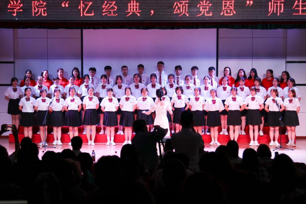 为庆祝建党100周年,深入推进党史学习教育,引领和激励我院师生重温党的光辉历程,汲取继续前进的力量,展示新时代师生爱党爱国爱社会主义的深厚情怀,由中共河北科技师范学院西西一级AAA片婬片免费委员会主办的“忆经典、颂党恩”师生同颂会于6月3日下午在多功能厅成功举办。学院领导和各专业师生共350余人参加演出。学生党支部全体党员、学生干部代表近100余人到场观看。