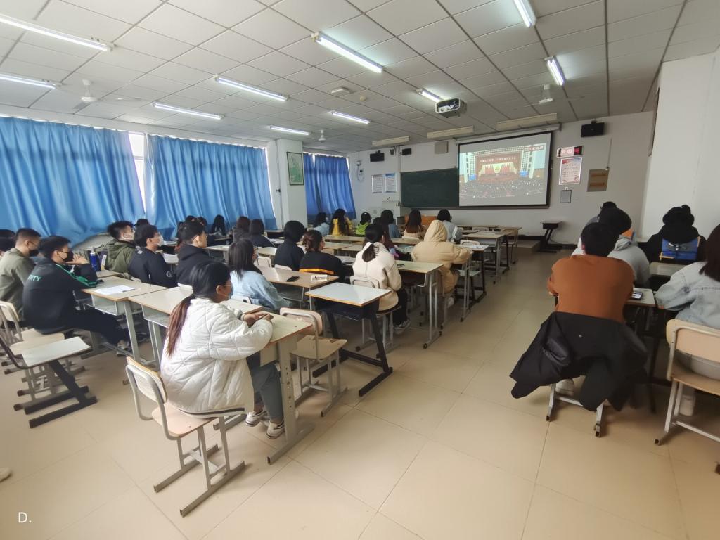 在满足疫情防控的基础上,校内7名党员教师以及两个学生党支部65名党员学生分别线下集中收看,在庄重的国歌声中,感受到了二十大开幕会的盛况,聆听习近平总书记所作的报告。校外居家办公老师通过电视、网络、新媒体等各自观看直播,并通过微信群实时分享心得。同时,各班级学生通过腾讯会议视频、手机直播等多种形式收看,确保全院师生观看和学习的效果。