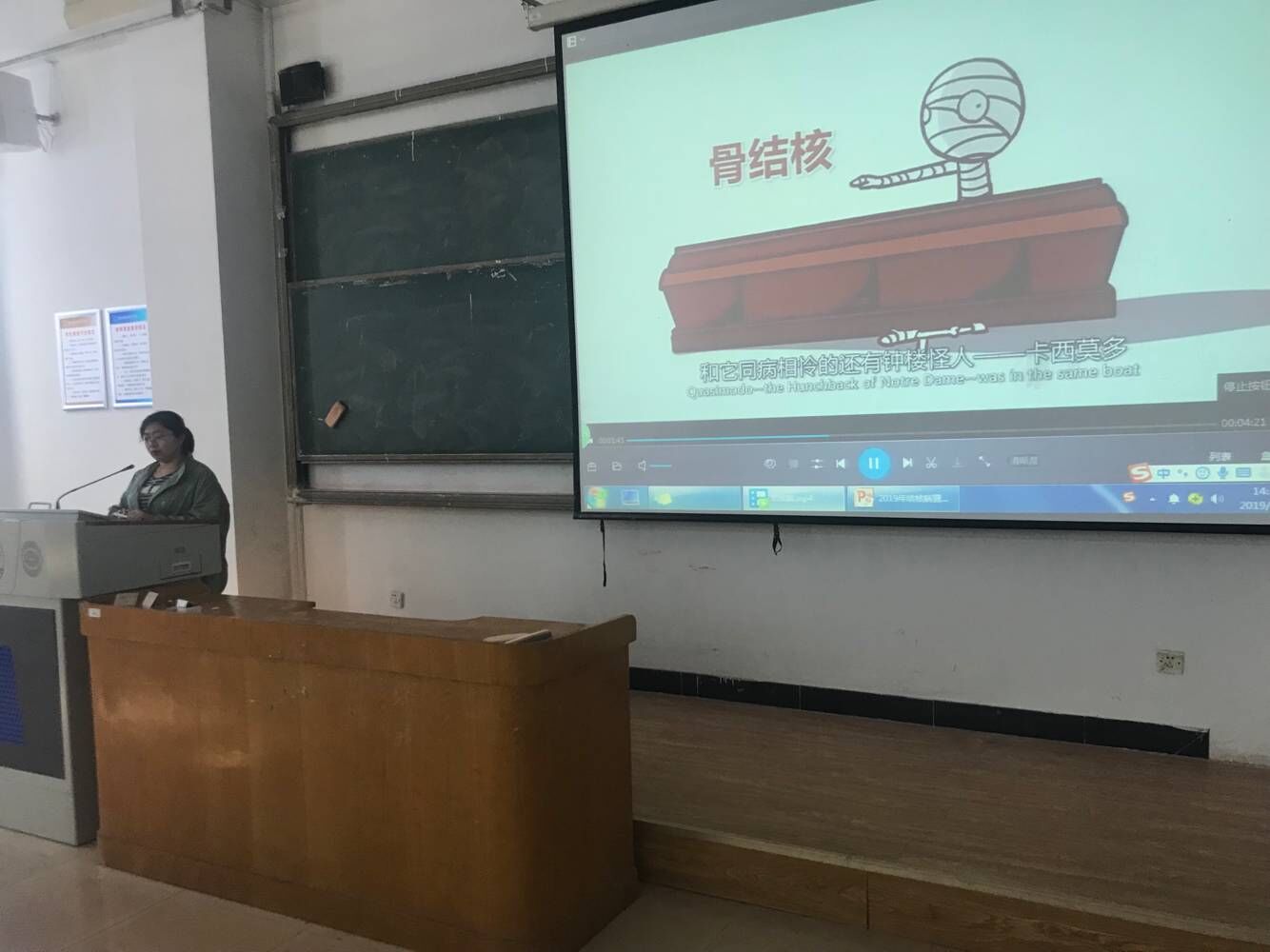 在下午的讲座中,齐峻瑶医师介绍了结核病的含义、结核杆菌的特性、结核病的流行过程;讲解了肺结核的症状、传染源、传染途径和易感人群;描写了大学校园内一些容易携带病菌的中介体;着重强调了早期发现肺结核病人、控制传染源的重要性和一些明显特征;明确指出了校园结核病防控措施。除此之外,齐峻瑶医师还对现实的一些传染病案例进行分析与深入了解,透彻的说明传染病的传播过程。列举了学校结核病疫情的高发时间与群体。