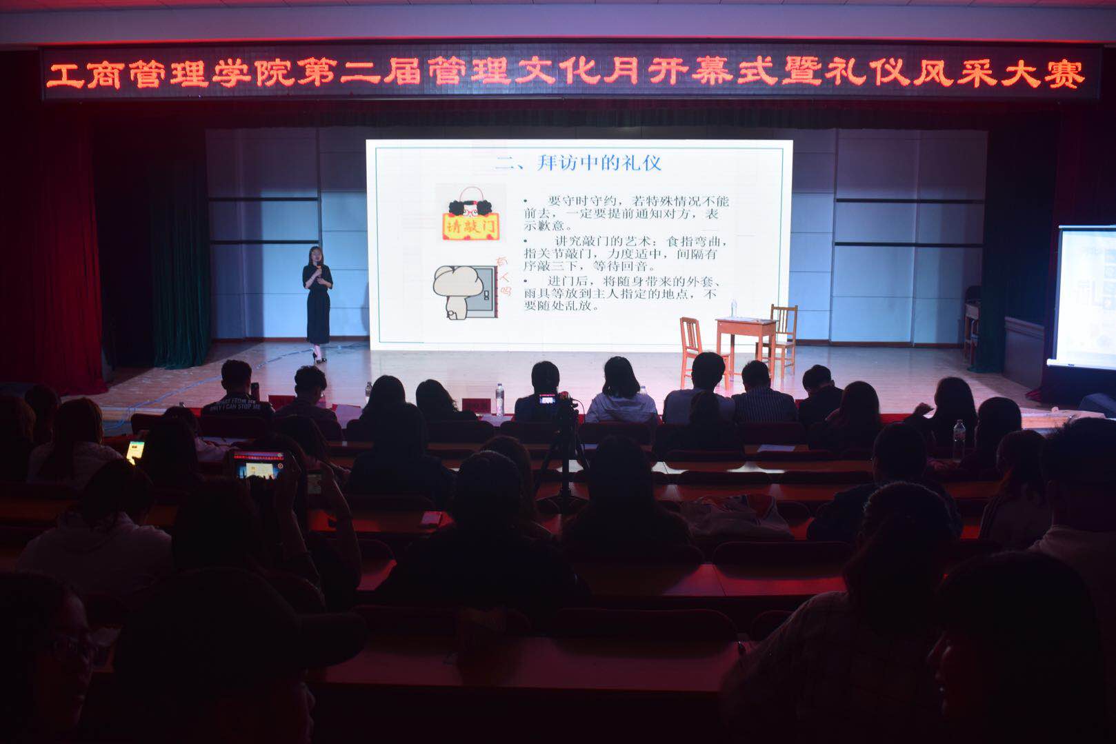 2018年5月8日,西西一级AAA片婬片免费于多功能厅举办第二届管理文化月开幕式暨礼仪风采大赛决赛,学院领导、学工办全体老师及300余名学生参加了此次活动。